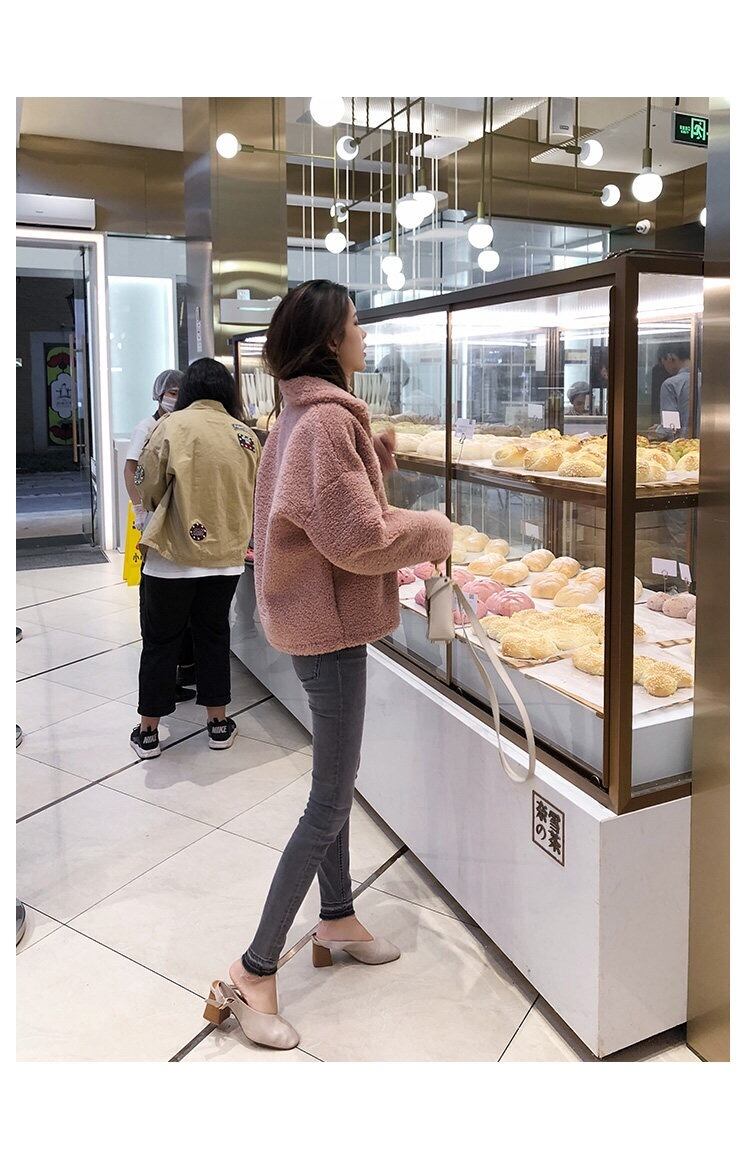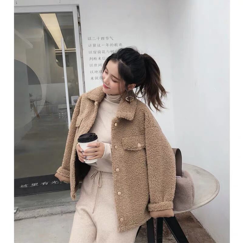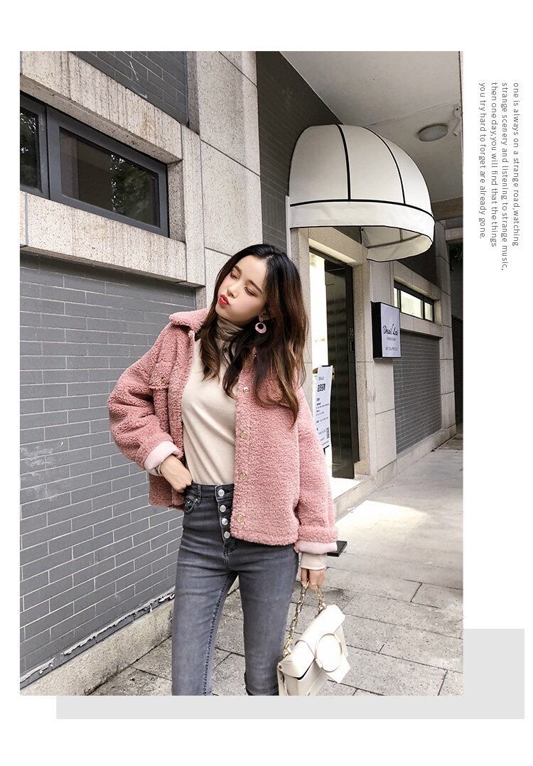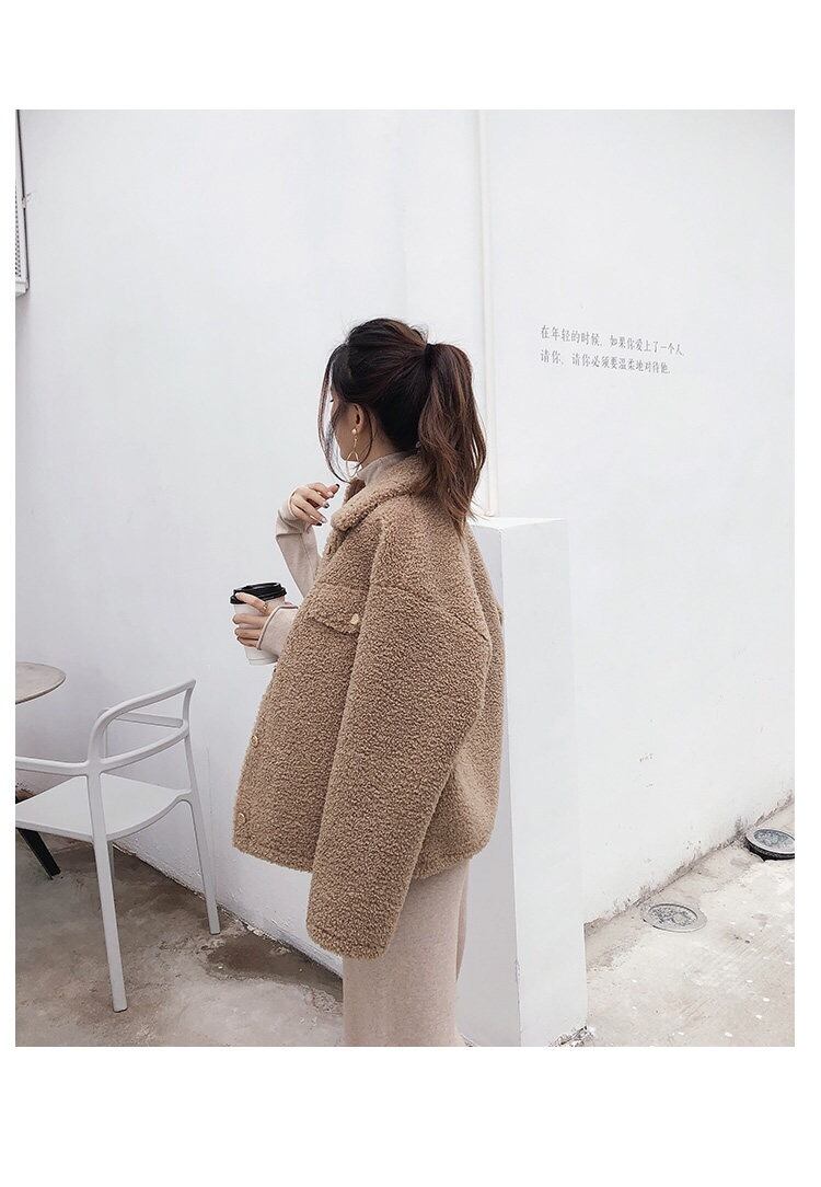 ゆったりとした腕のラインとゴールドのボタンが魅力的なモコモコジャケット。