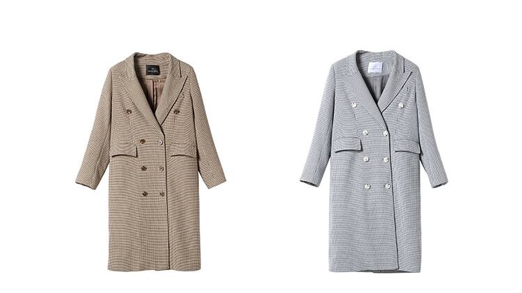 長い丈感とダブルボタンが魅力的な千鳥柄のコート。